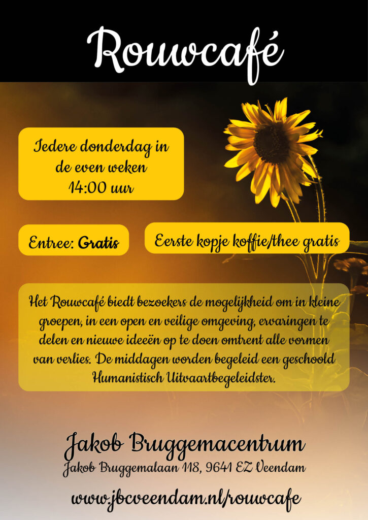 Het Rouwcafé biedt bezoekers de mogelijkheid om in kleine groepen, in een open en veilige omgeving, ervaringen te delen en nieuwe ideeën op te doen omtrent alle vormen van verlies. De middagen worden begeleid door Hetty Antema, oud-conrector aan de Winkler Prins en geschoold Humanistisch Uitvaartbegeleidster.